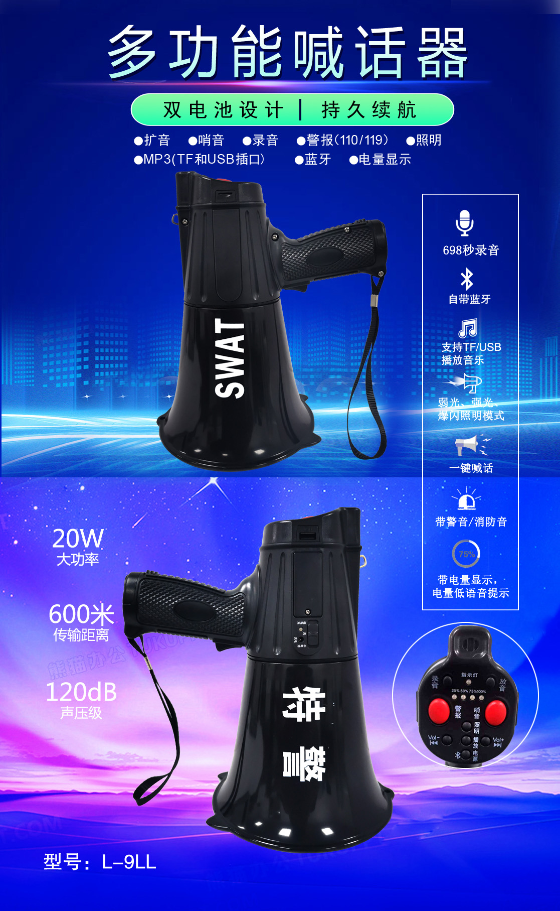 • 專(zhuān)業(yè)設(shè)計(jì),外觀獨(dú)特、新穎,操作簡(jiǎn)便的多功能喊話器
